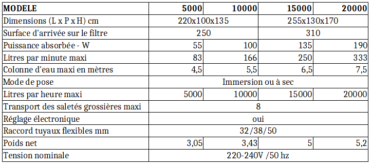 - Filtration Efficace : Capable de transporter des saletés grossières jusqu’à 8 mm de diamètre .